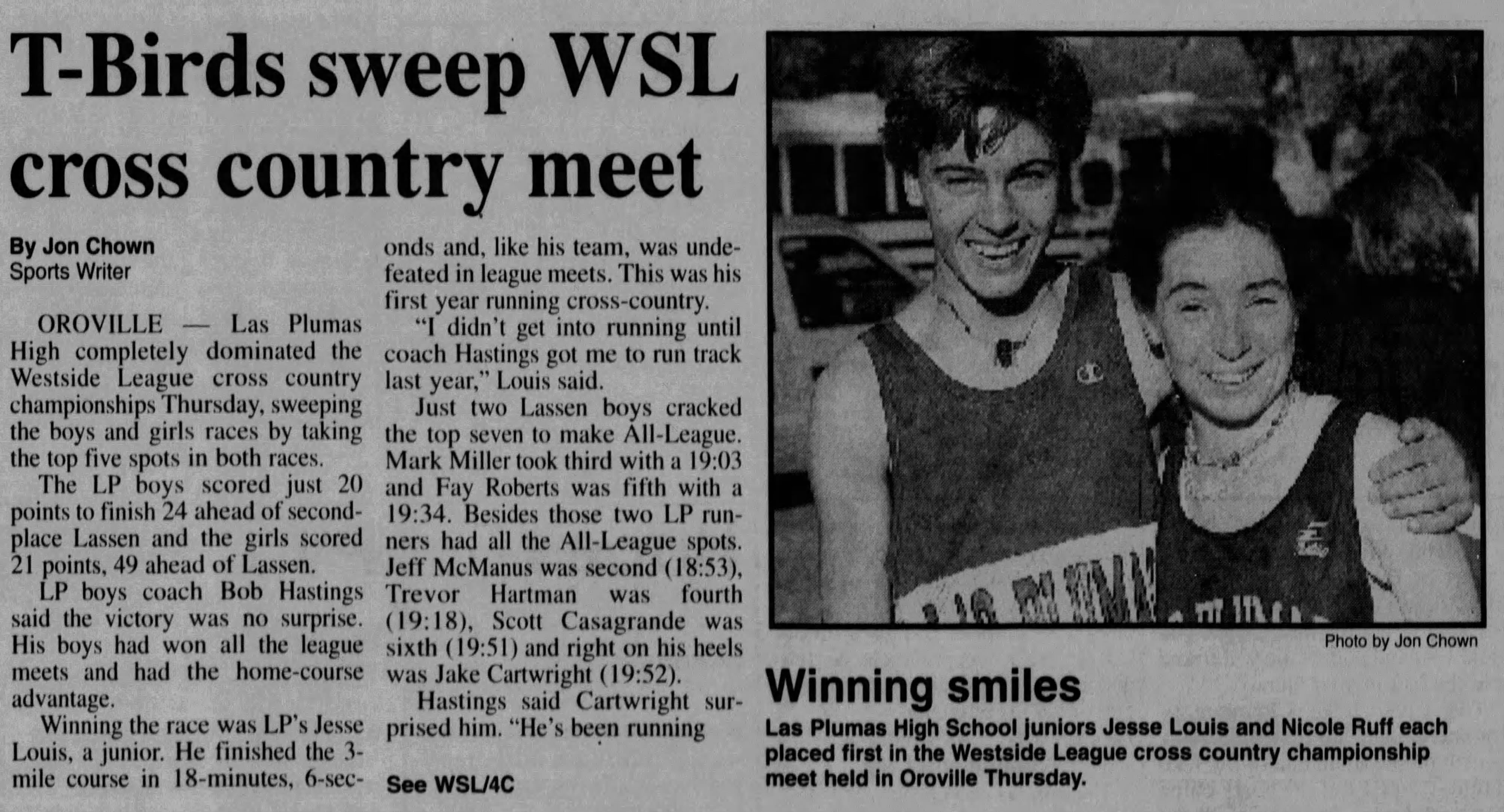 1996 WSL Cross Country Championships North Forebay, Lake Oroville Recreation Area (probably) Oroville, California Thursday November 7, 1996