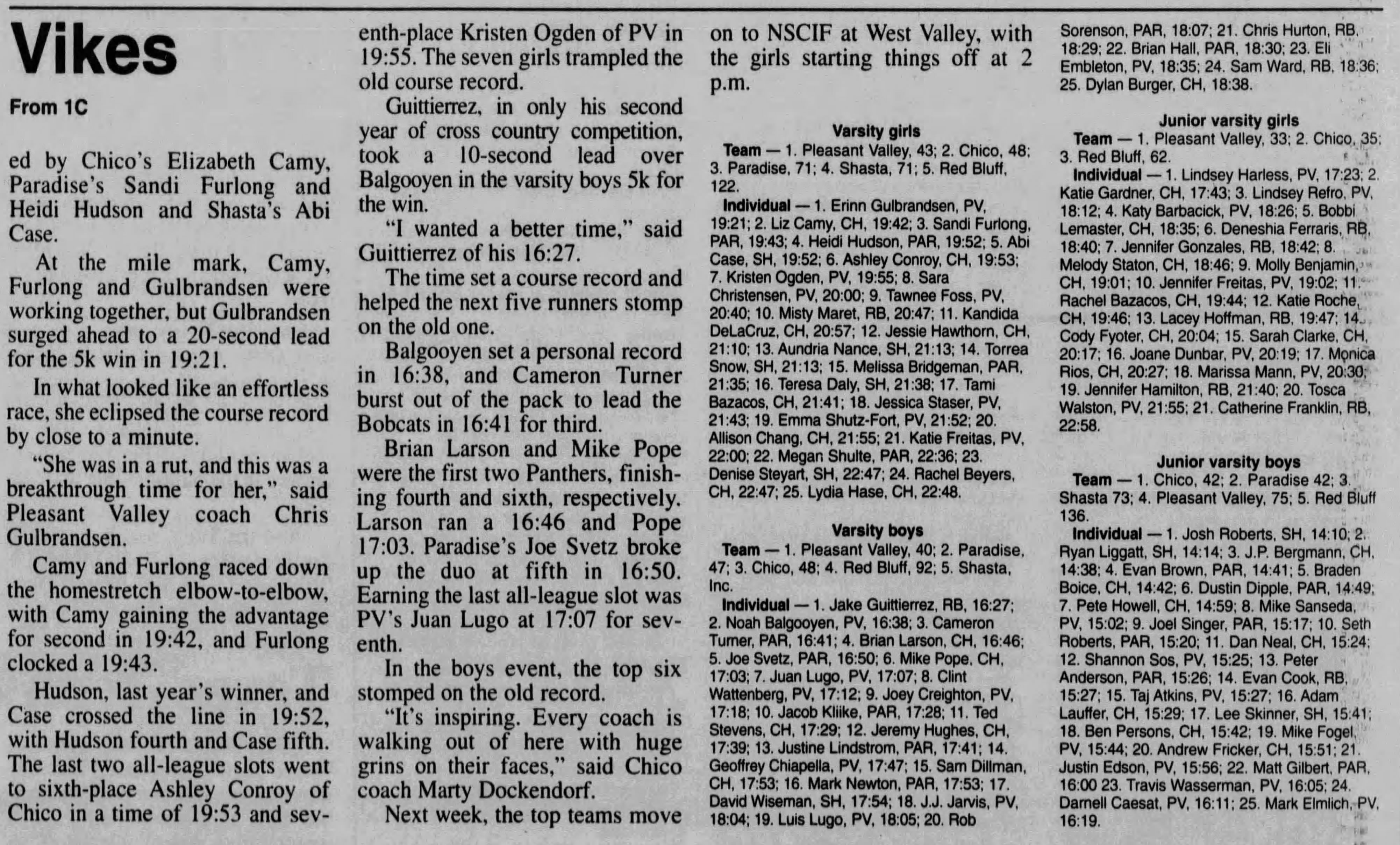 1997 EAL Cross Country Championships Caldwell Park Redding, California Thursday November 6, 1997 Complete results
