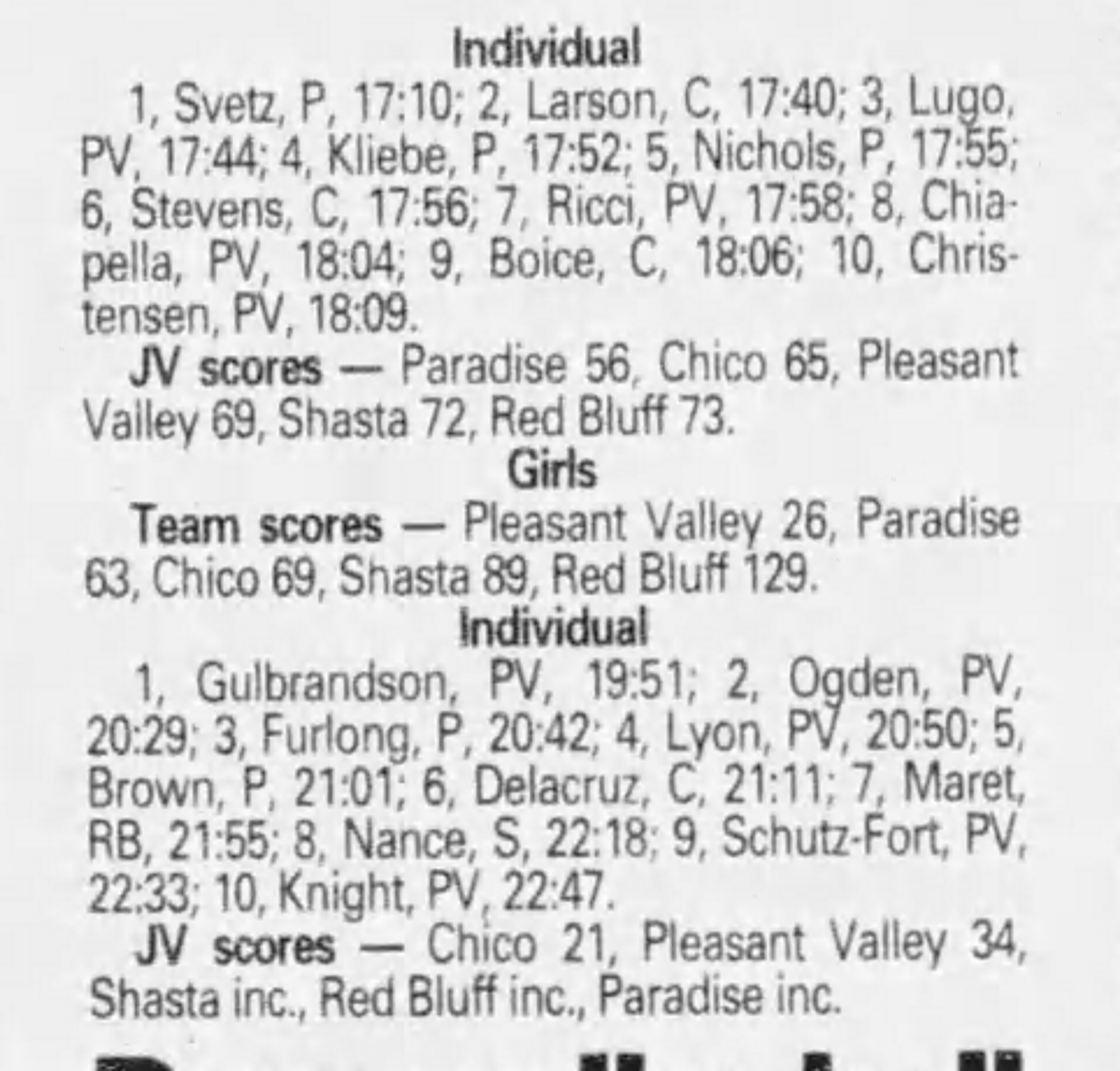 1998 EAL Cross Country Championships Hooker Oak Recreation Area Chico, California Thursday November 5, 1998 Complete results