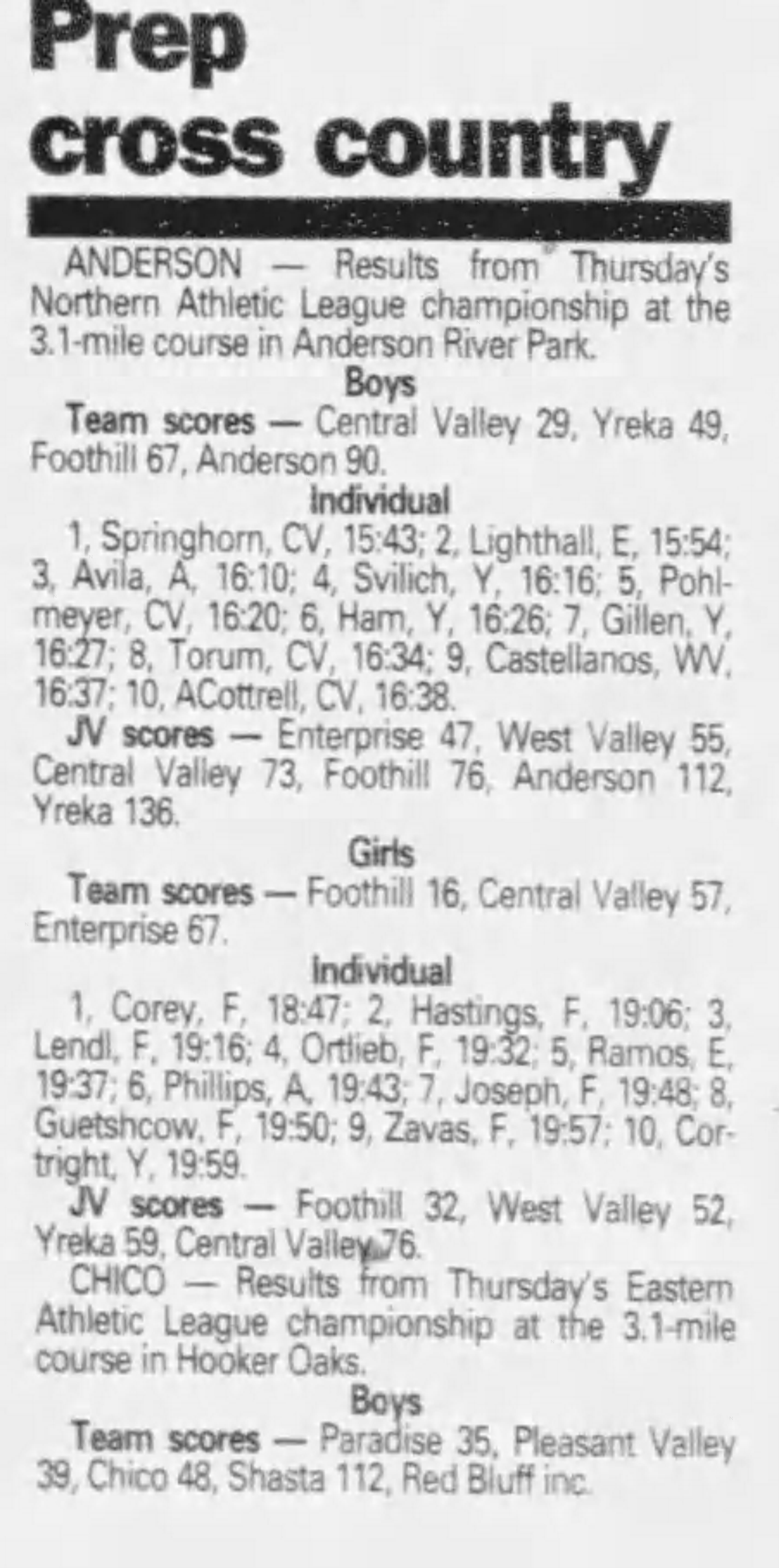 1998 NAL Cross Country Championships Anderson River Park Anderson, California Thursday November 5, 1998