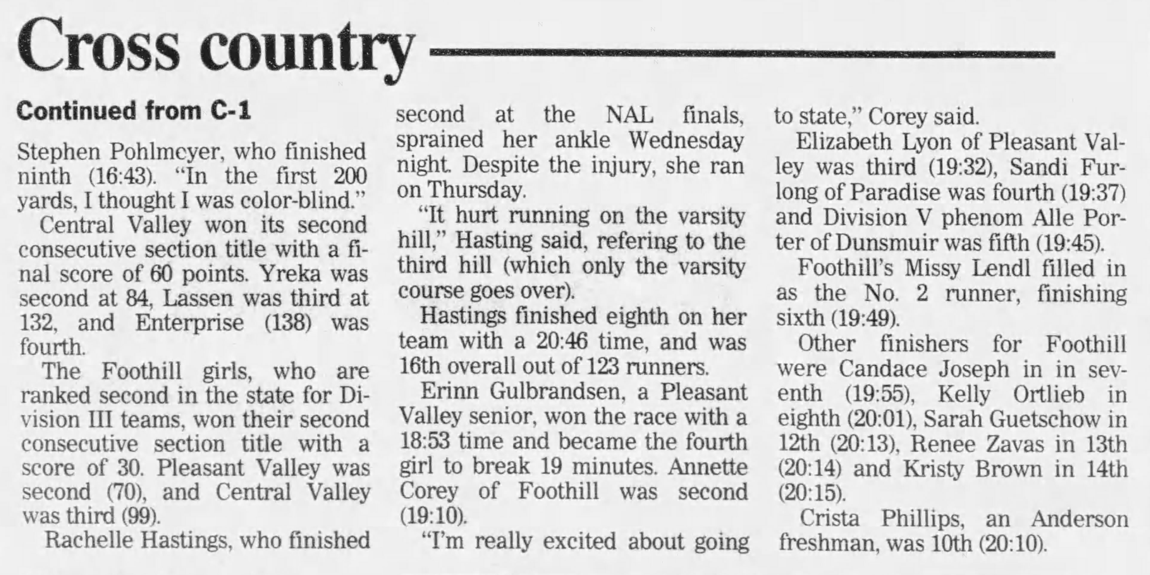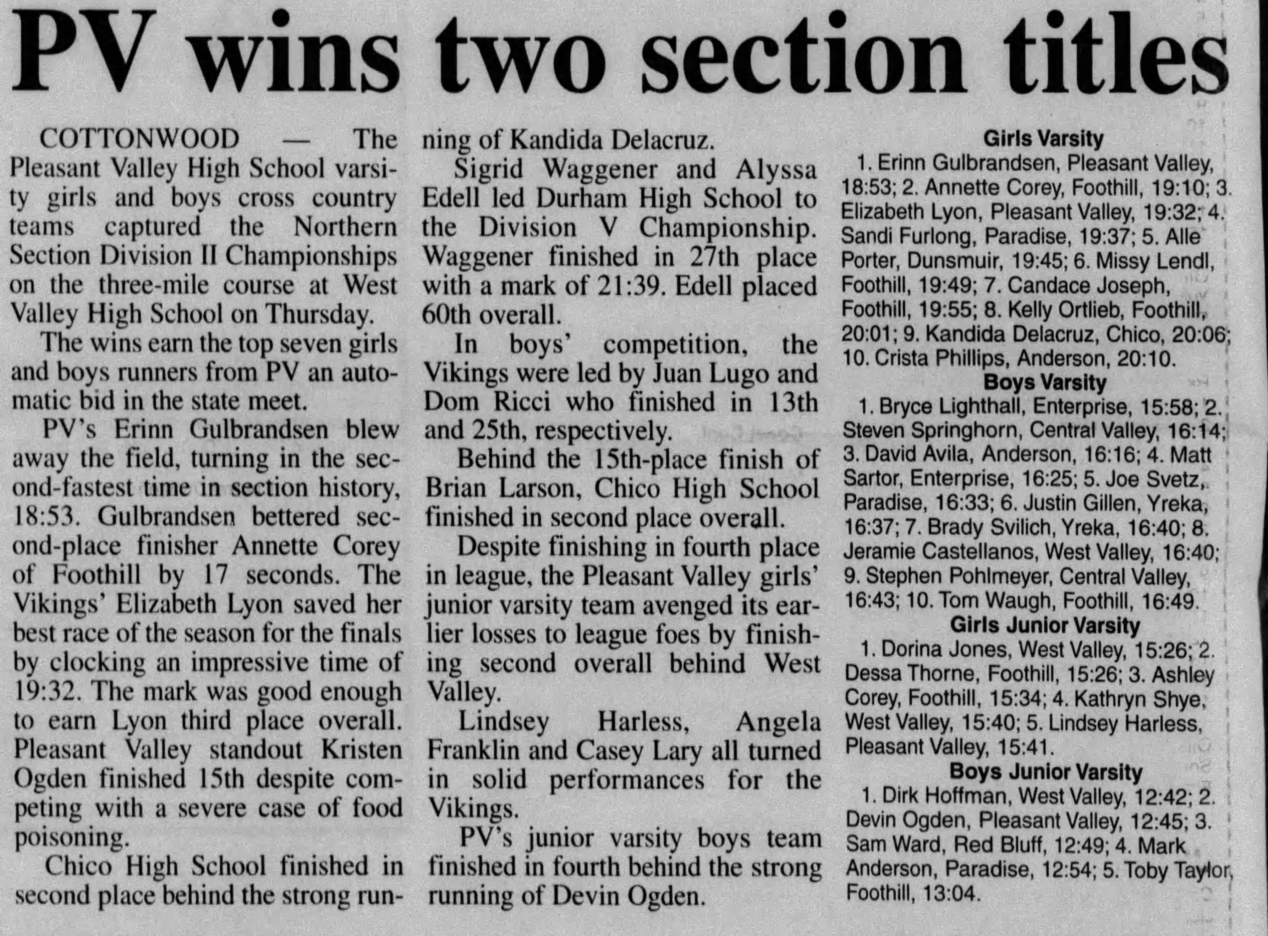 1998 NSCIF Cross Country Championships West Valley HS (current course) Cottonwood, California Thursday November 12, 1998