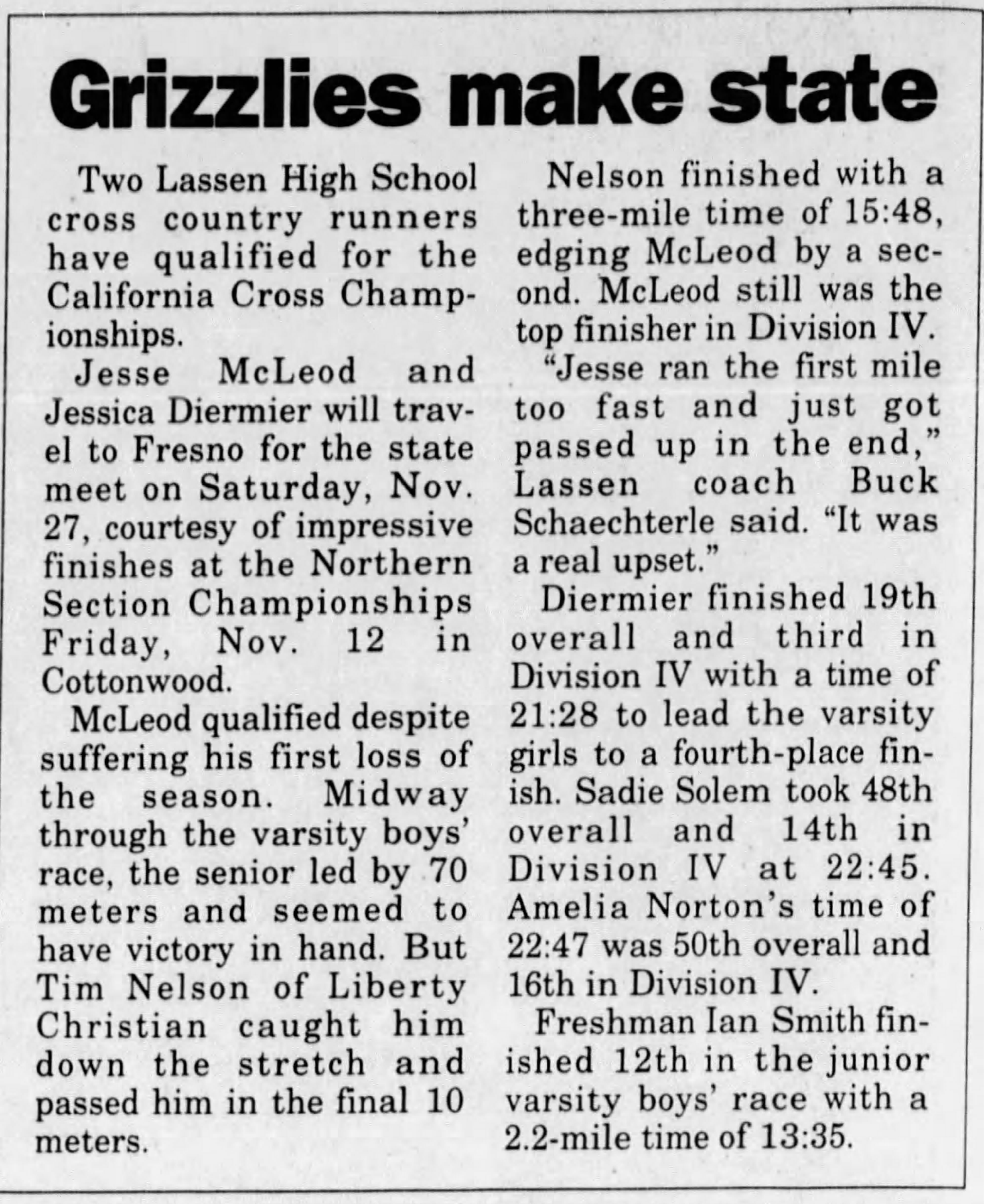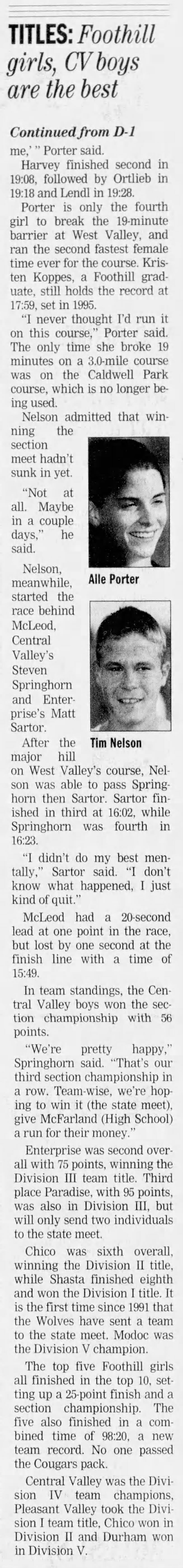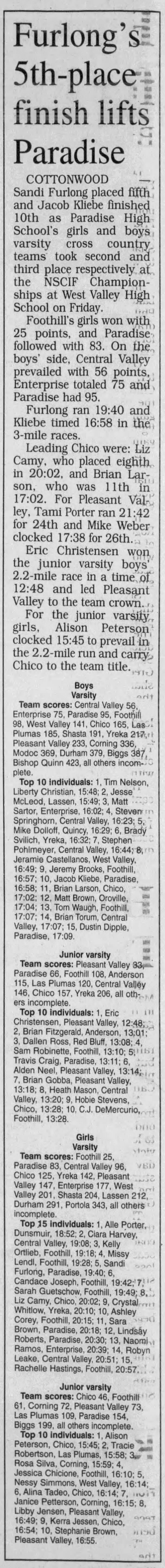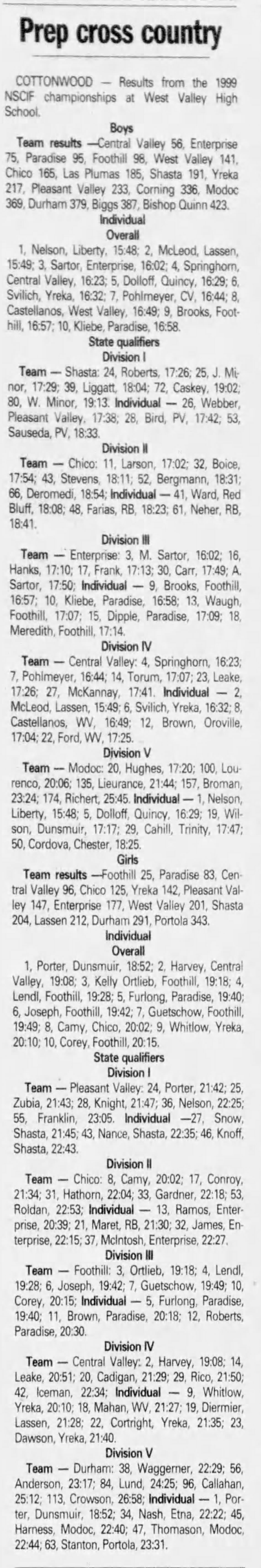 1999 NSCIF Cross Country Championships West Valley HS (current course) Cottonwood, California Friday November 12, 1999