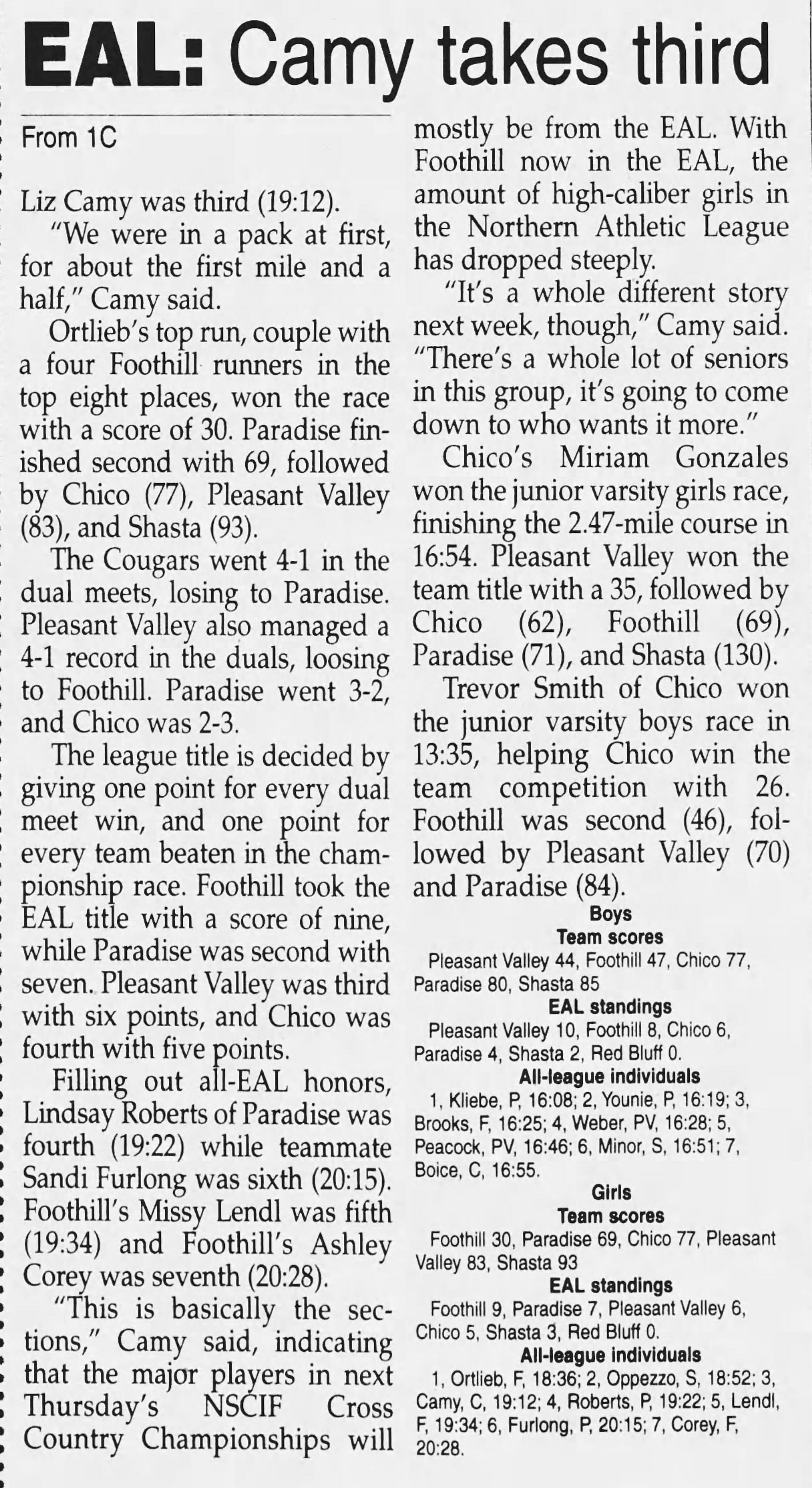 2000 EAL Cross Country Championships Hooker Oak Recreation Area Chico, California Thursday November 2, 2000 Complete results