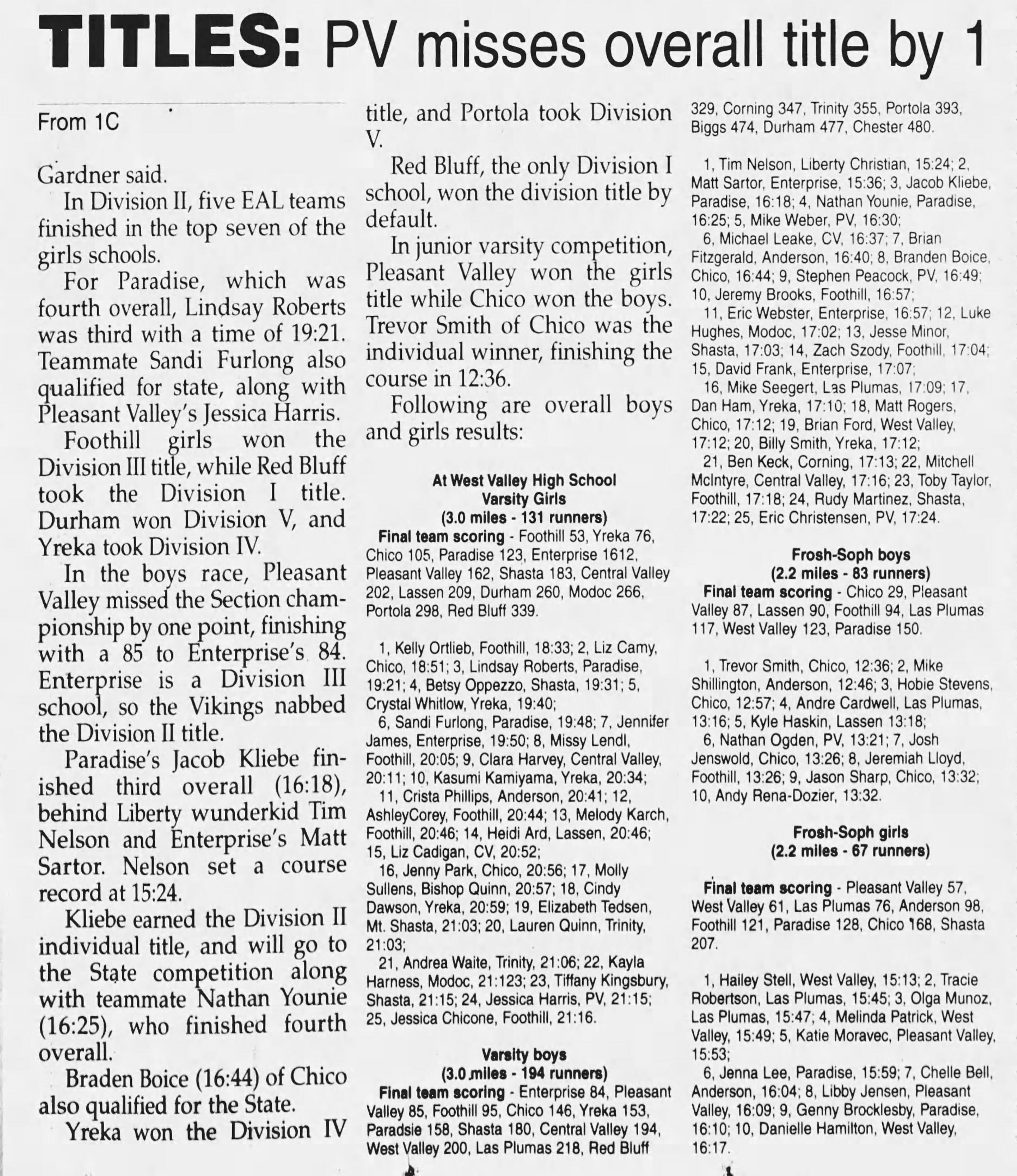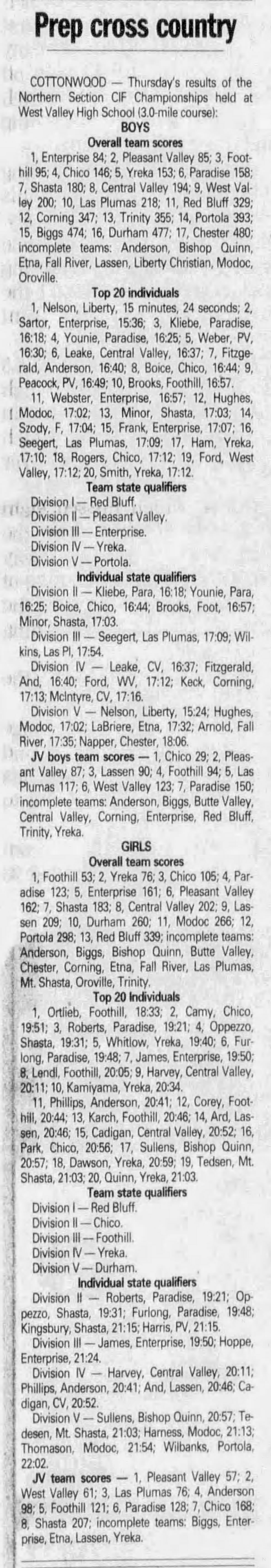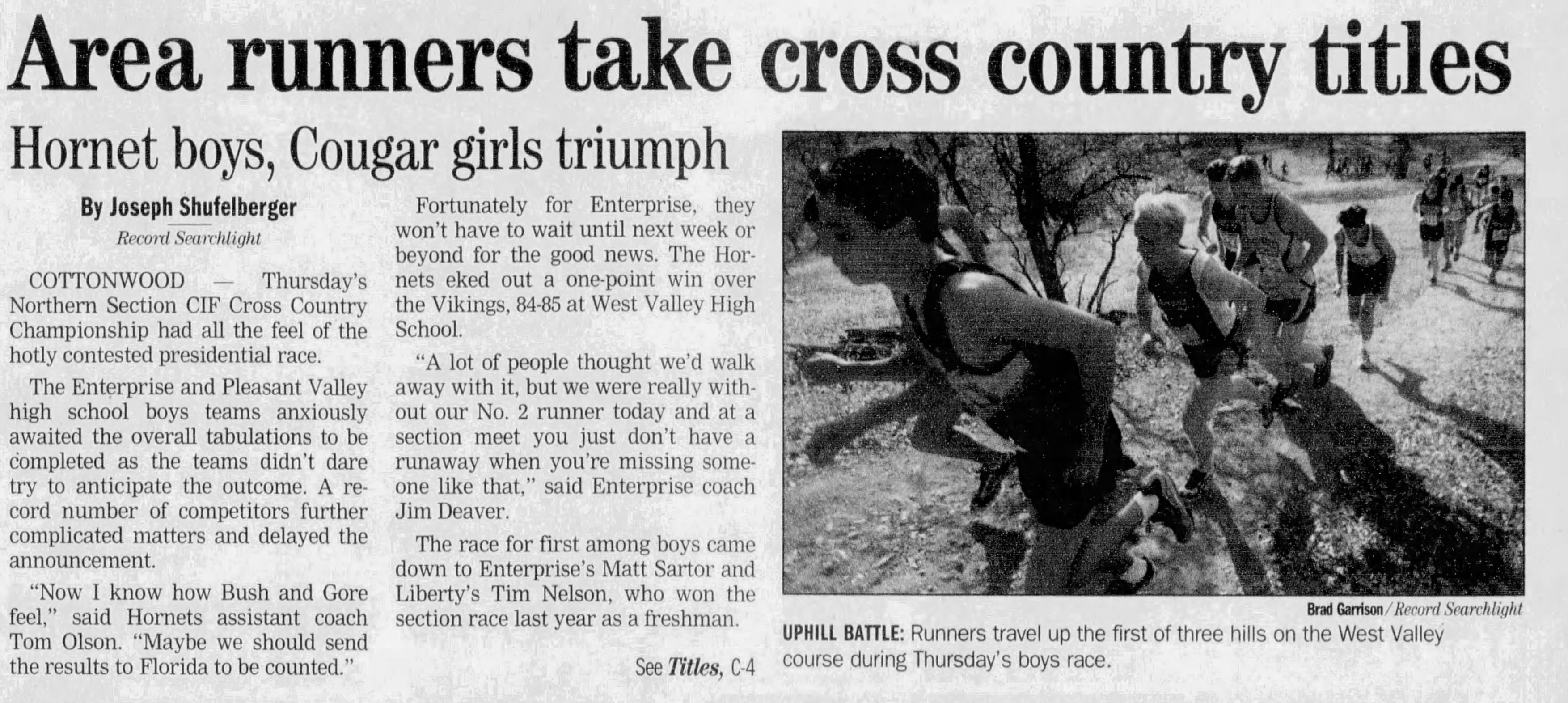 2000 NSCIF Cross Country Championships West Valley HS (current course) Cottonwood, California Thursday November 9, 2000