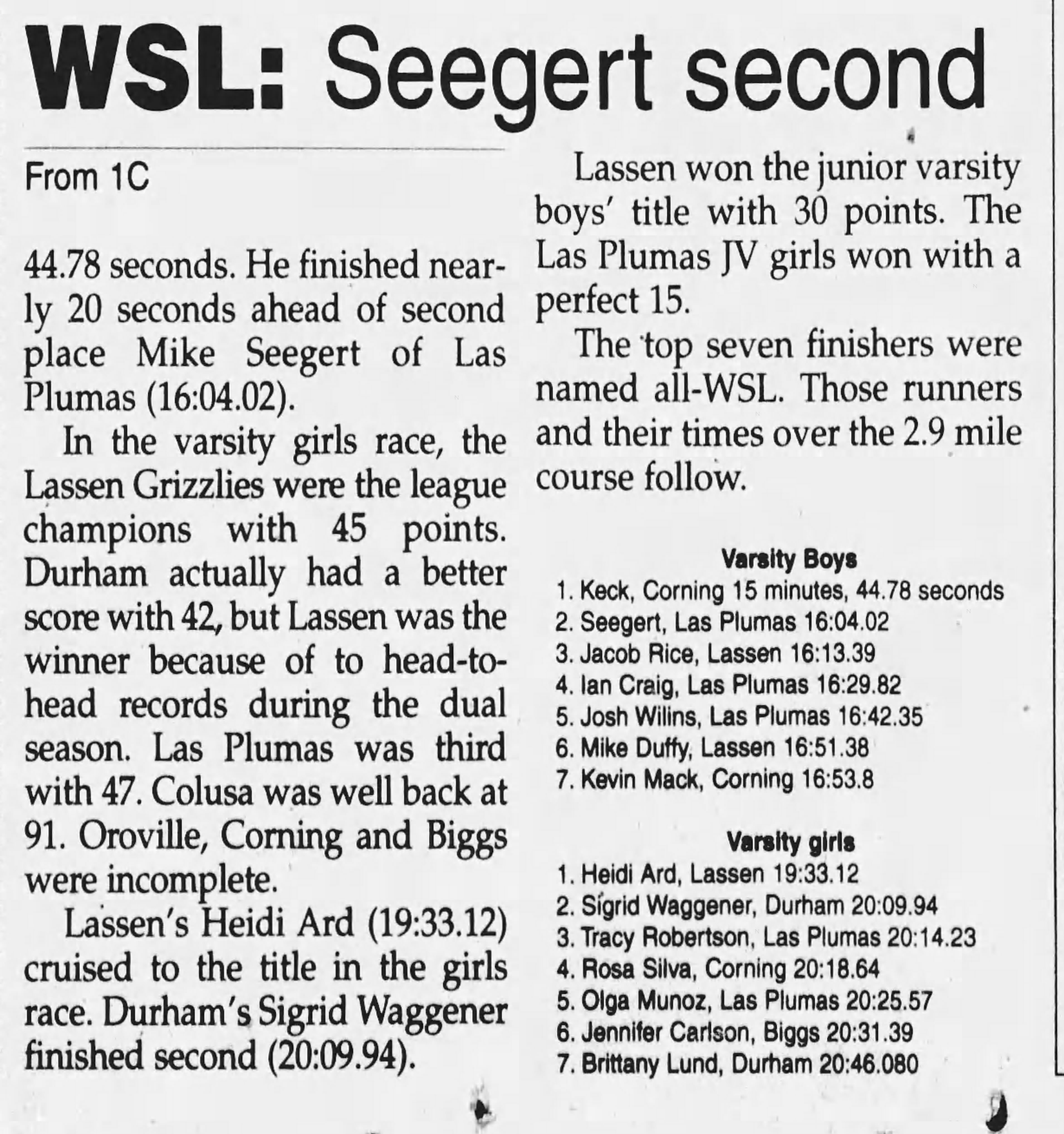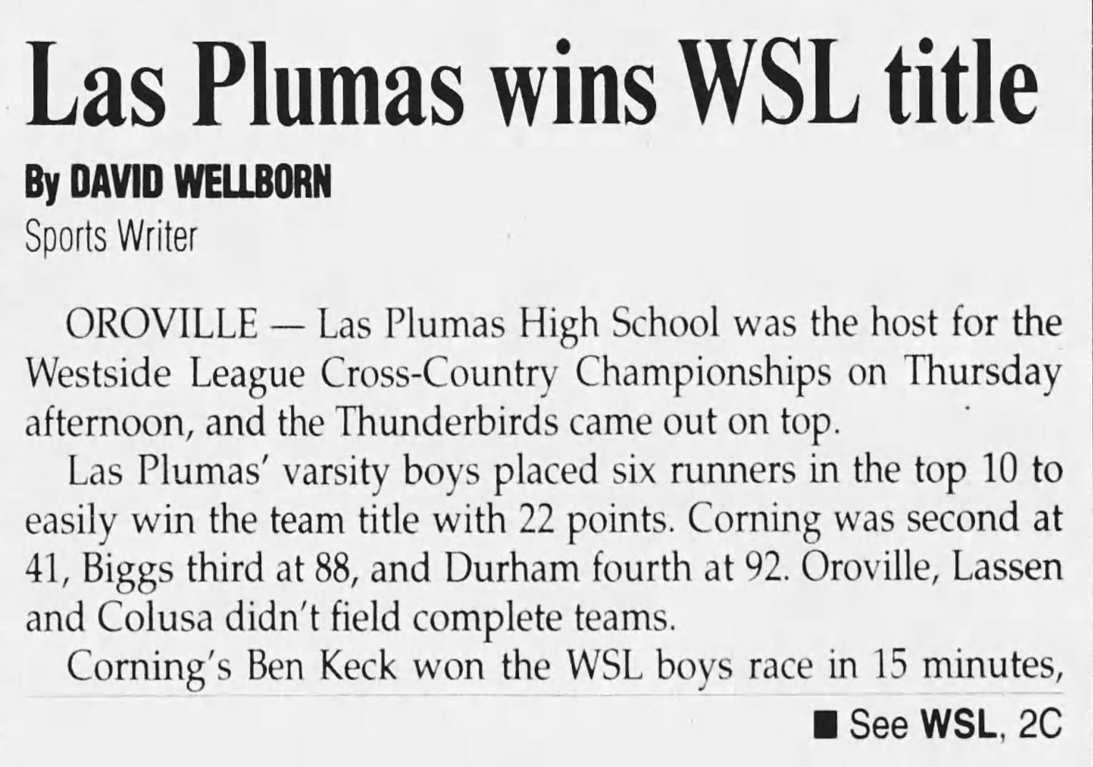 2000 WSL Cross Country Championships North Forebay, Lake Oroville Recreation Area Oroville, California Thursday November 2, 2000