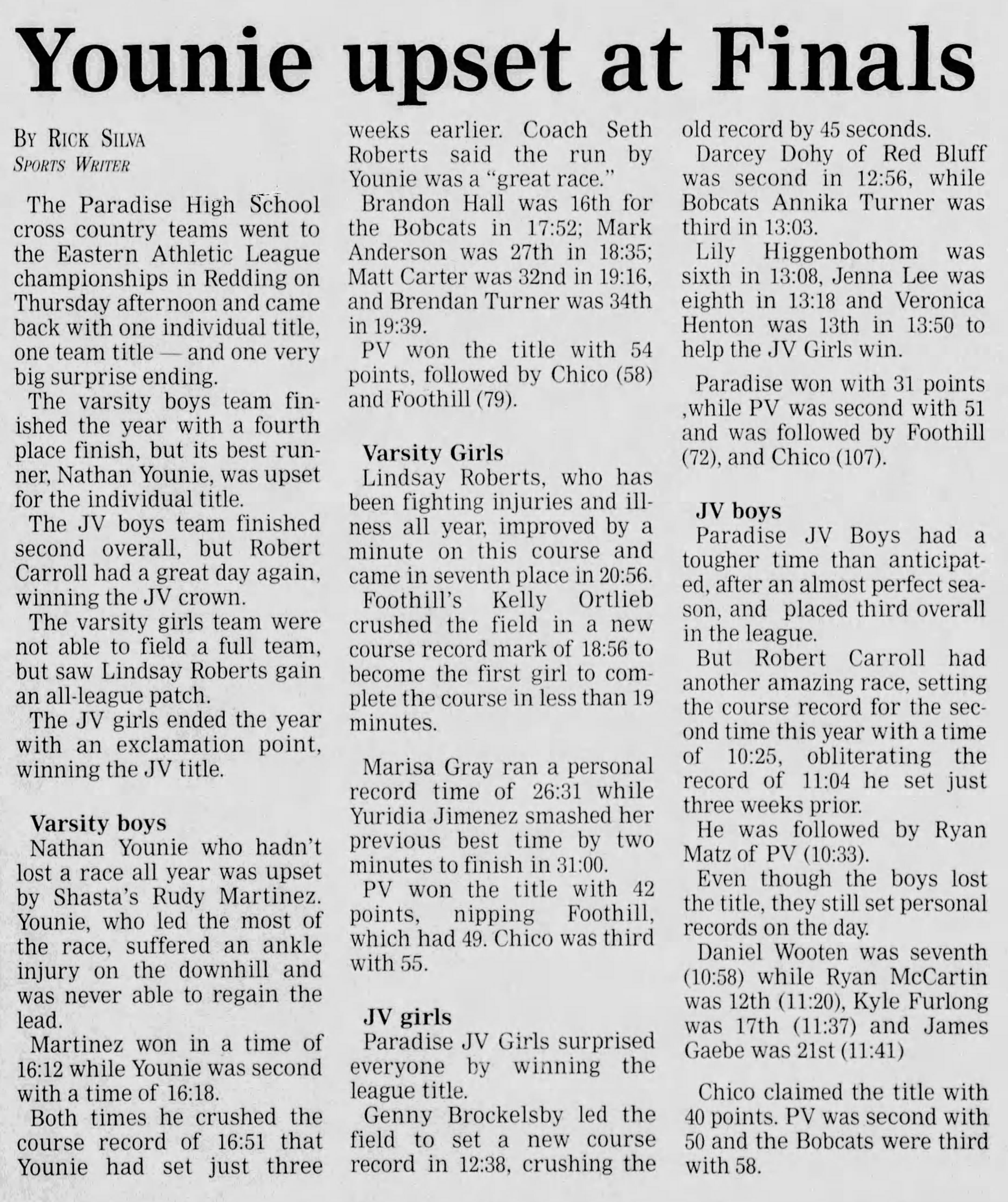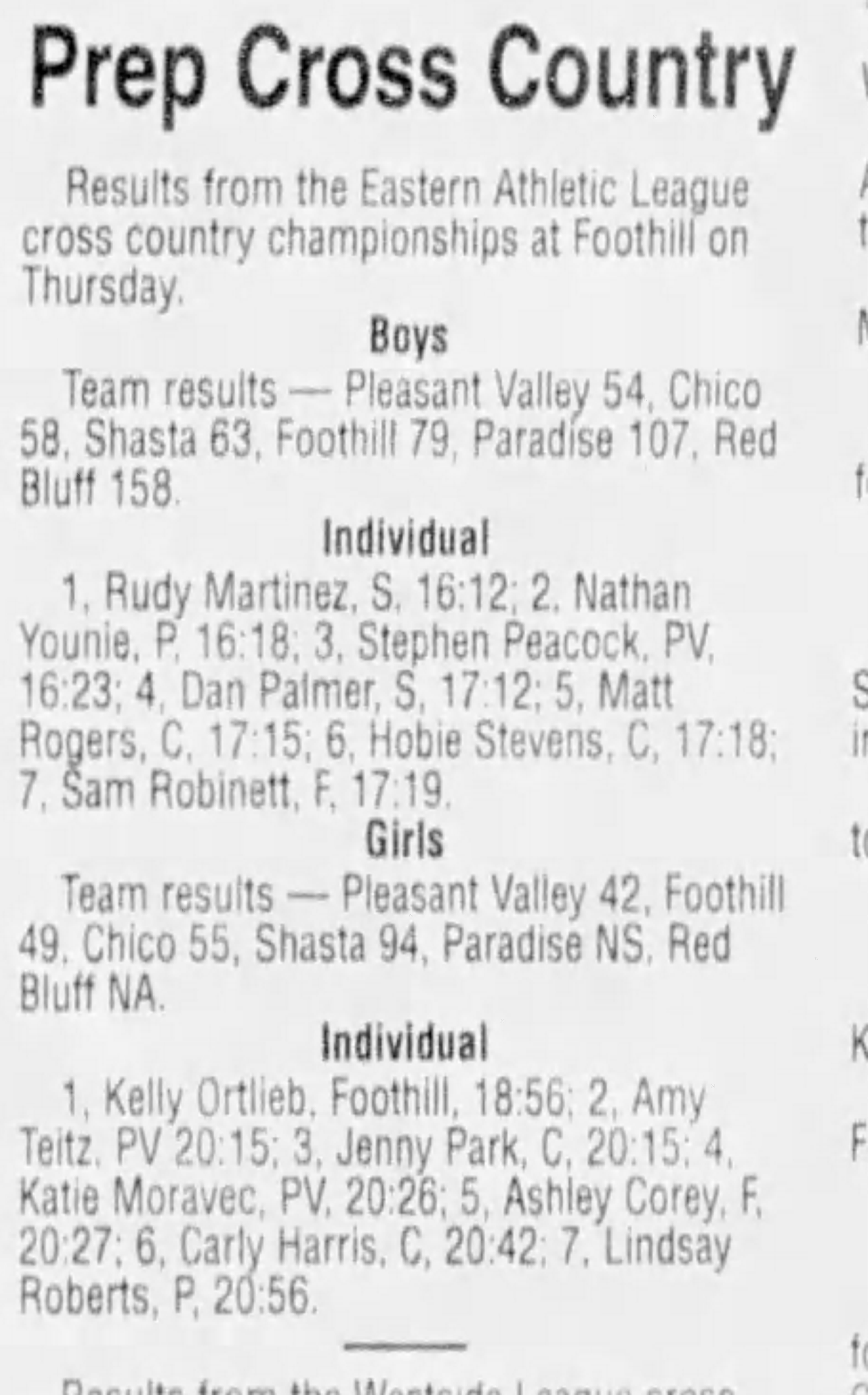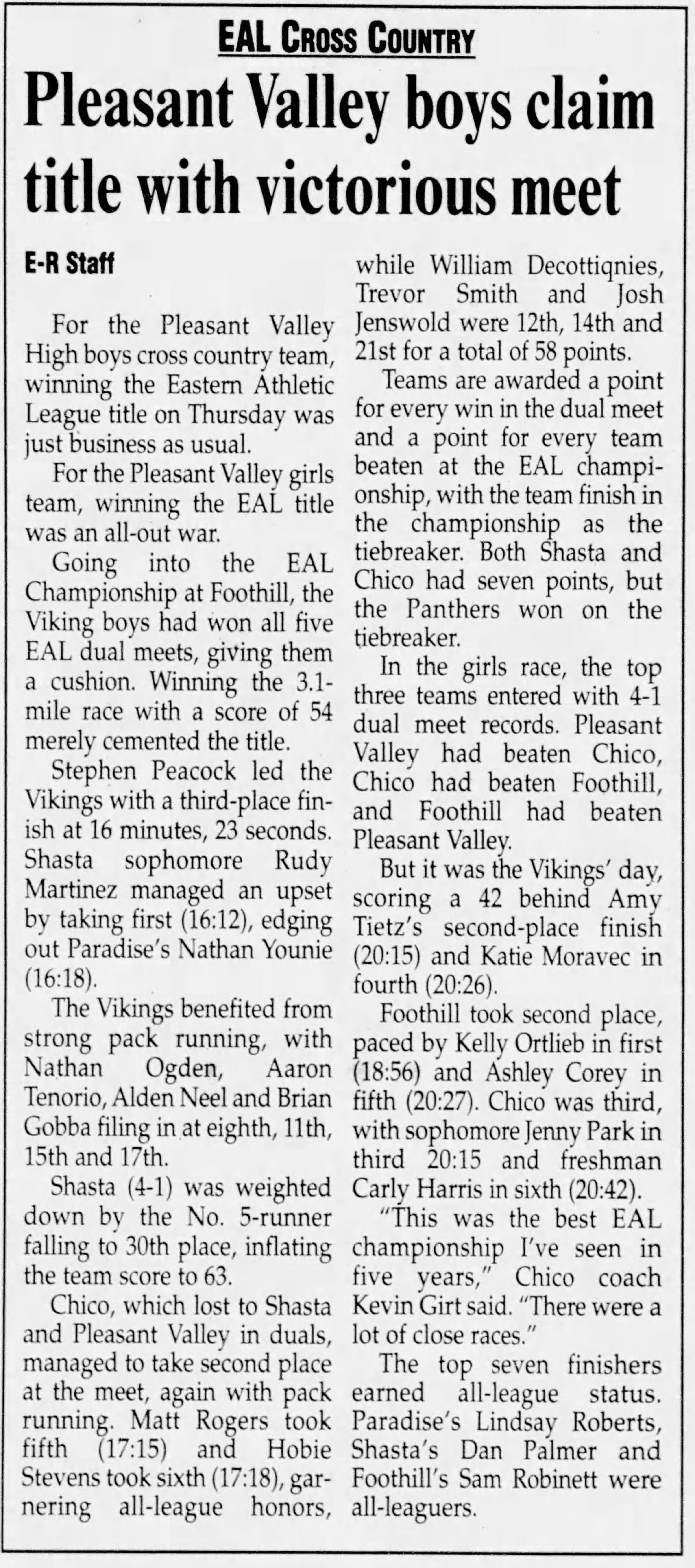 2001 EAL Cross Country Championships Foothill HS course Palo Cedro, California Thursday November 1, 2001 Complete results