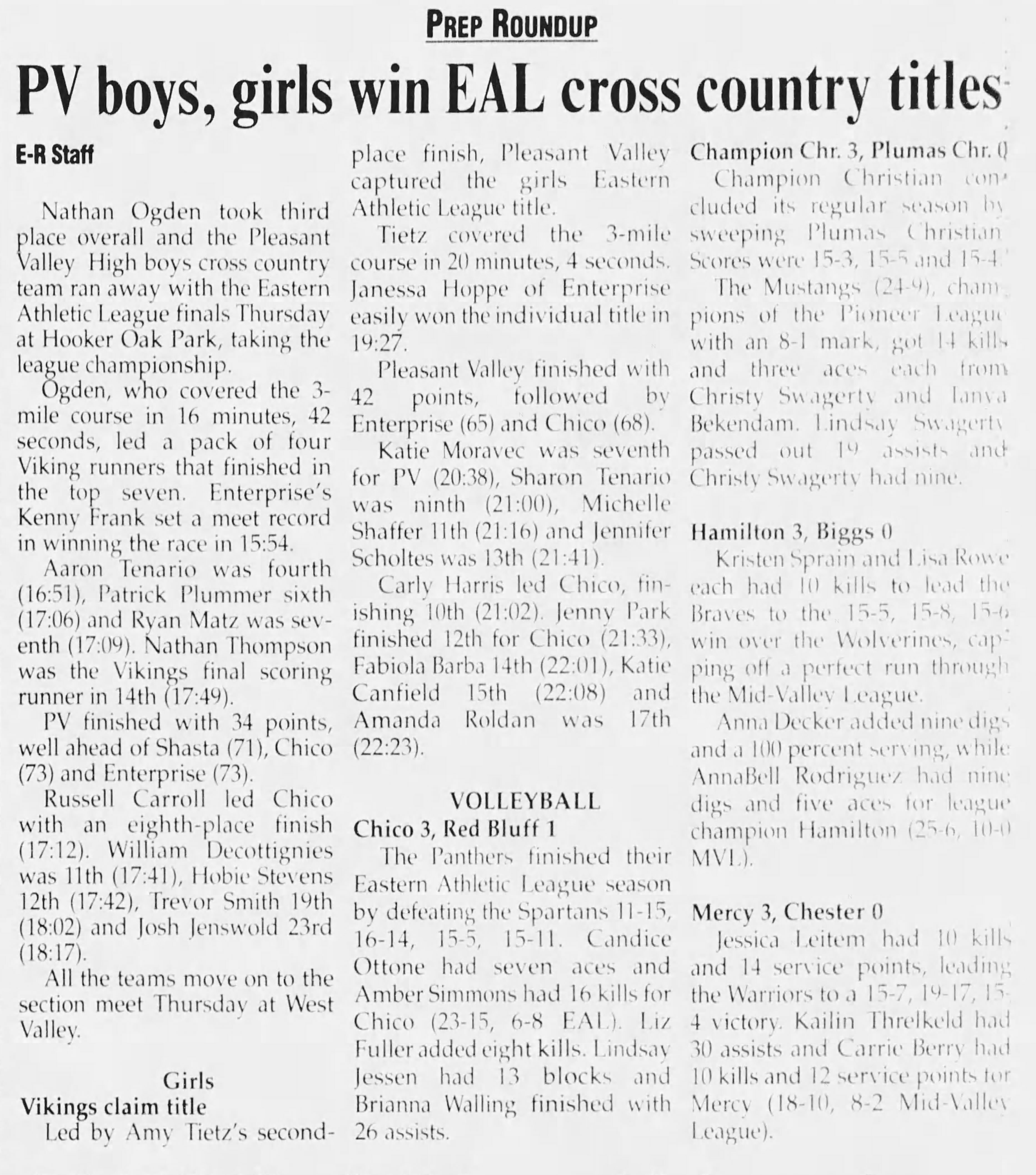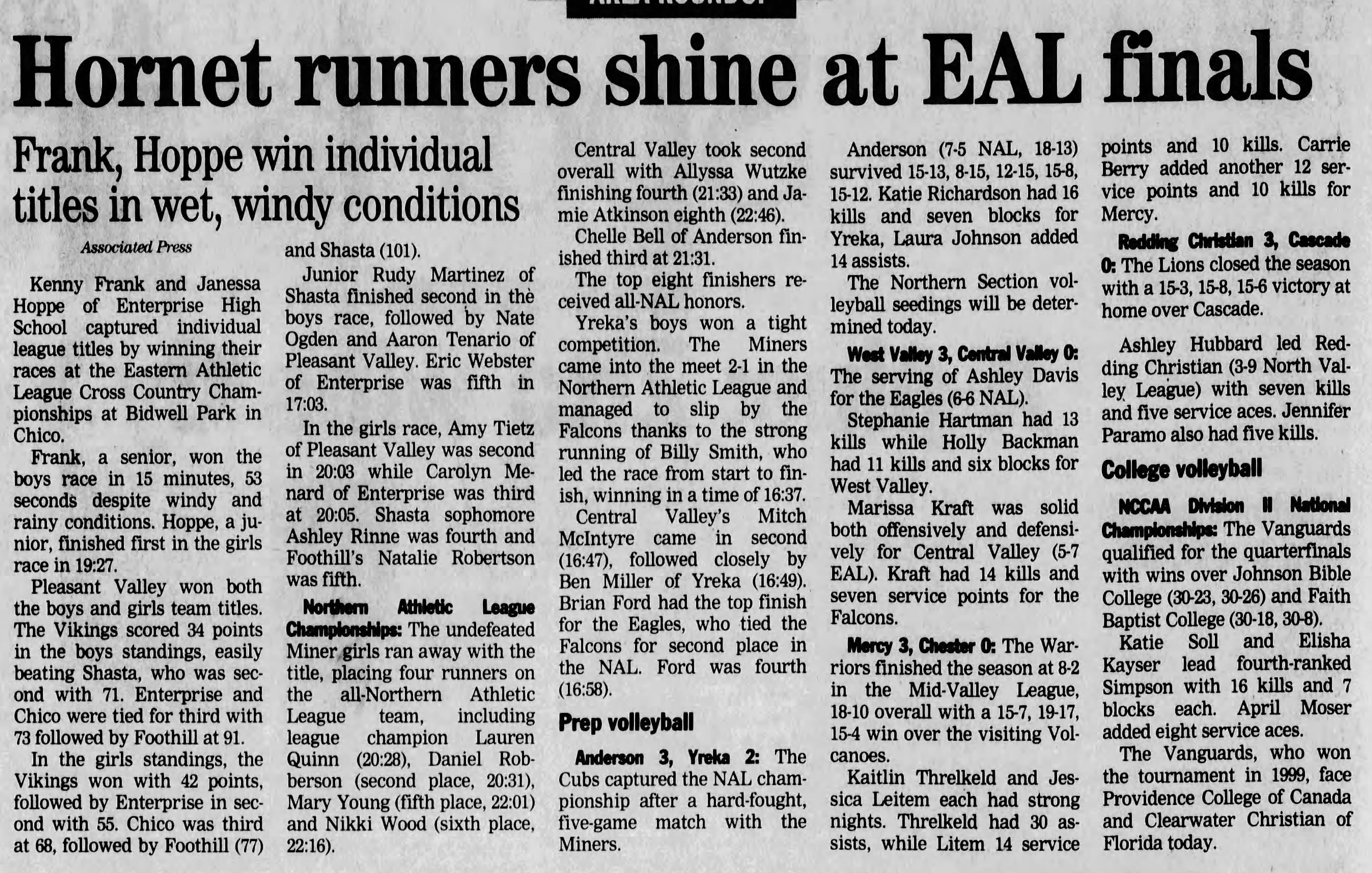 2002 EAL Cross Country Championships Hooker Oak Recreation Area, Bidwell Park Chico, California Thursday November 7, 2002 Complete results