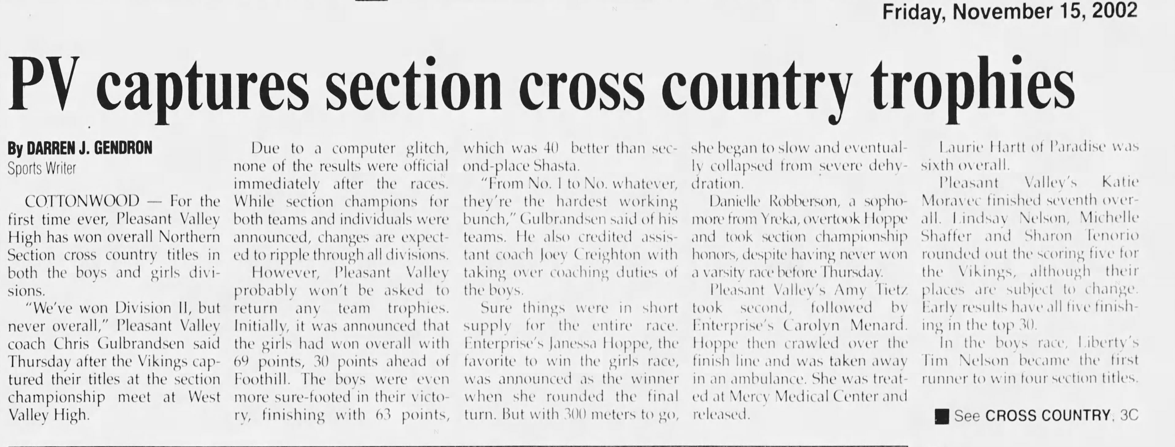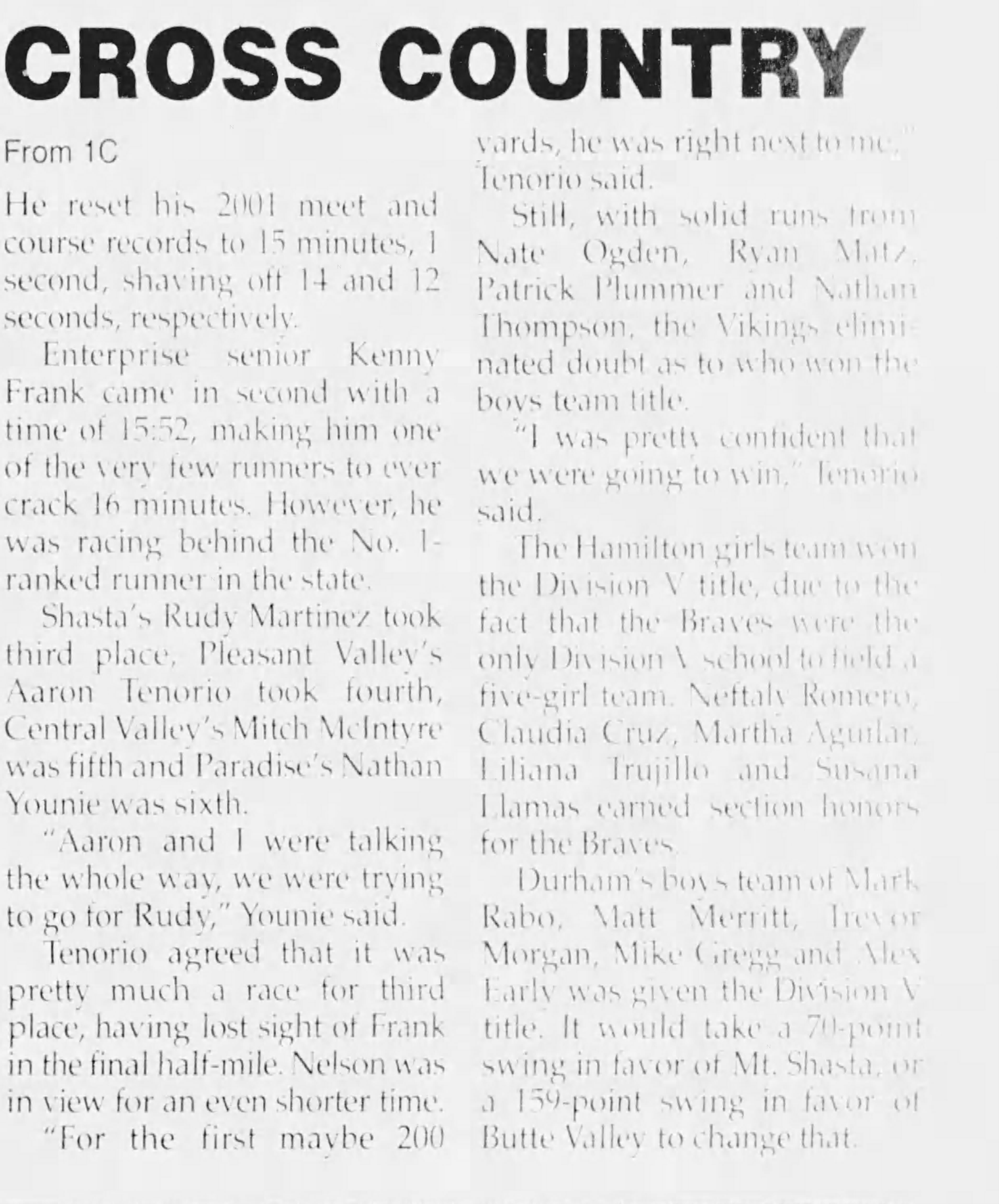 2002 NSCIF Cross Country Championships West Valley HS (current course) Cottonwood, California Thursday November 14, 2002