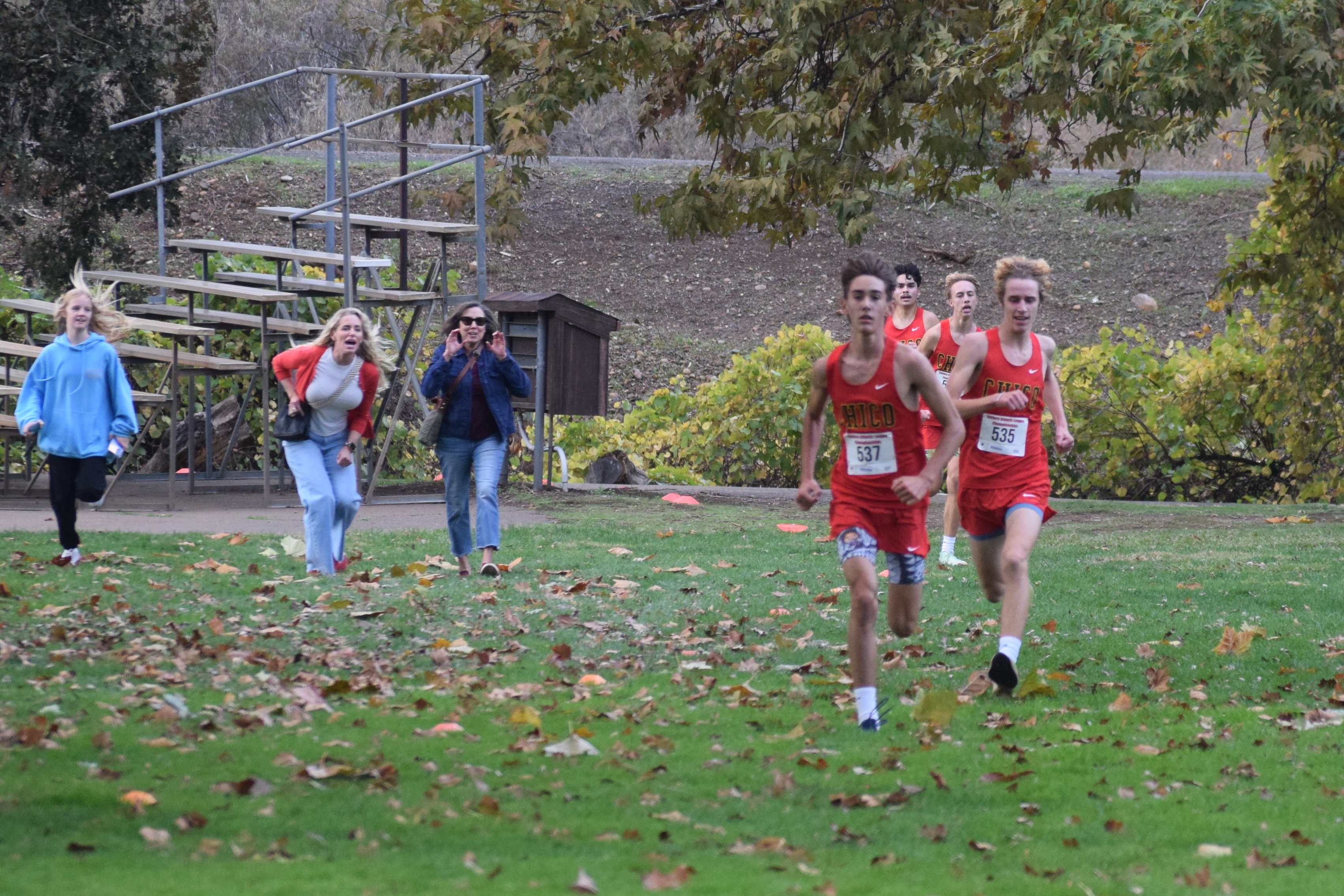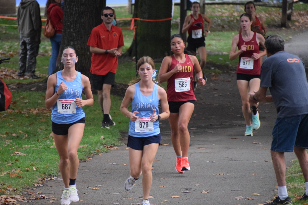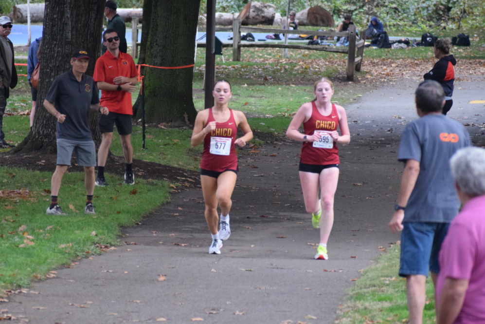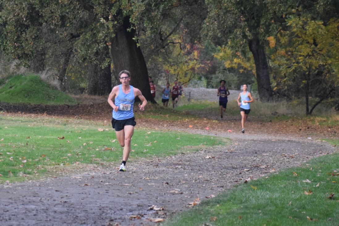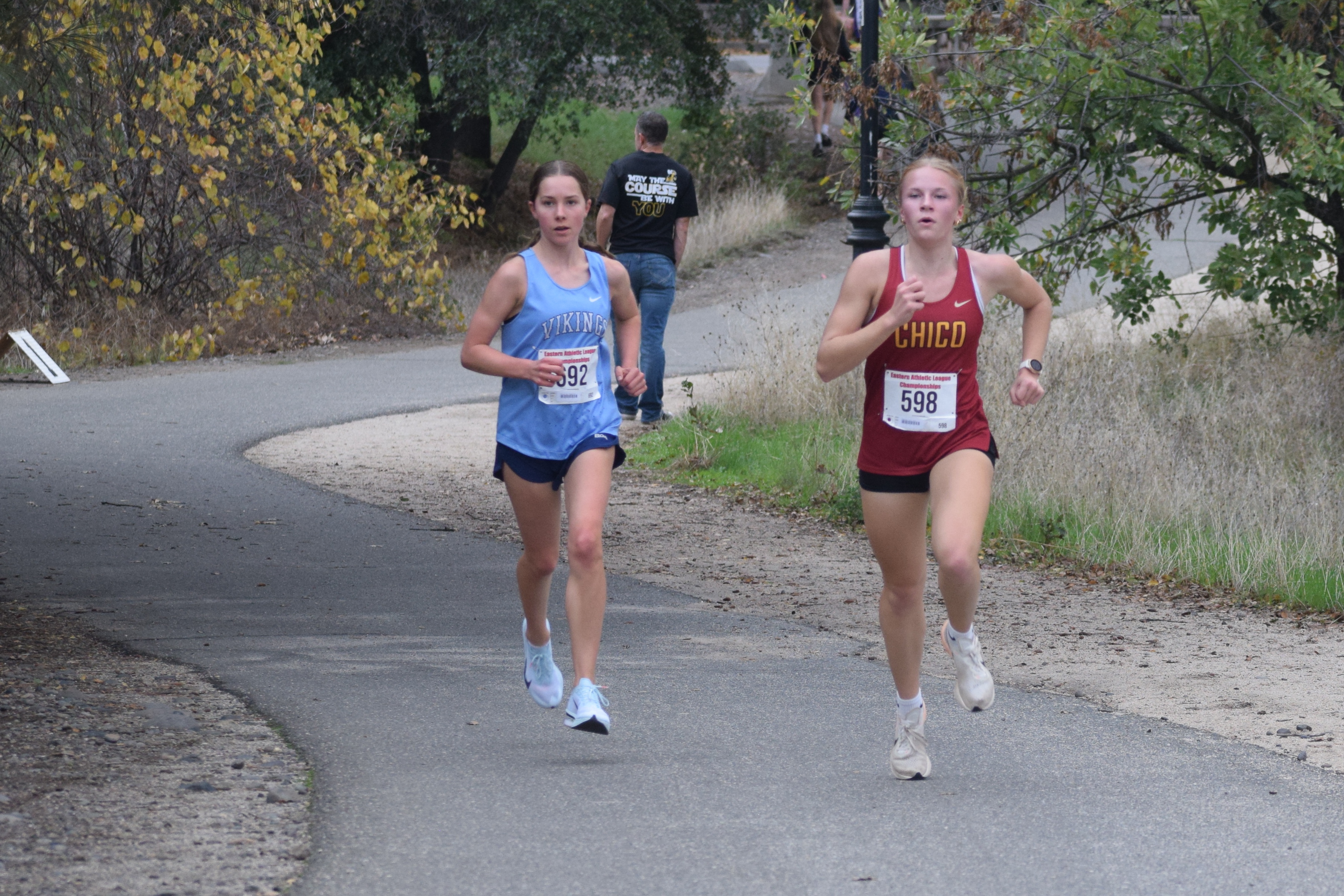 Rounding the final turn, Pummer cruised across the remaining grassy stretch to the finish shute and took the win in 16:27. Six others would cross the finish line before 17 minutes were reached on the scoring clock with Lugo second, Shasta's Liberato settling for third and Lara left in fourth. A trio of Chico runners were next, Dana, Girt and Kressin. Rounding out the top ten were Bedolla, Foothill's top finisher, Good and Newell of Enterprise. At this point PV had the lead 7 to 18 over Chico with both teams having 3 runners in. Fortunes for the Vikings changed after five more runners finished as three of them were Panthers and only one was a Viking with a fifth and final scorer not coming in until 23rd. Thus Chico squeezes out a win over their crosstown rivals 42-44. Shasta was next with 62 pts, followed by Foothill in fourth with 89 points and much more distant Enterprise and Red Bluff in fifth (135 pts) and sixth (166 pts) respectively.